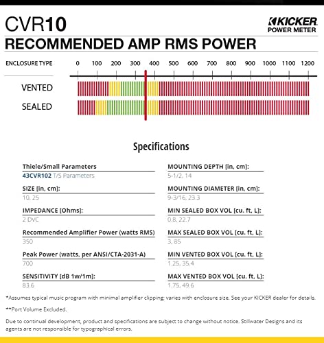 Kicker CompVR 10-Inch (25cm) Subwoofer, DVC, 2-Ohm, 350W