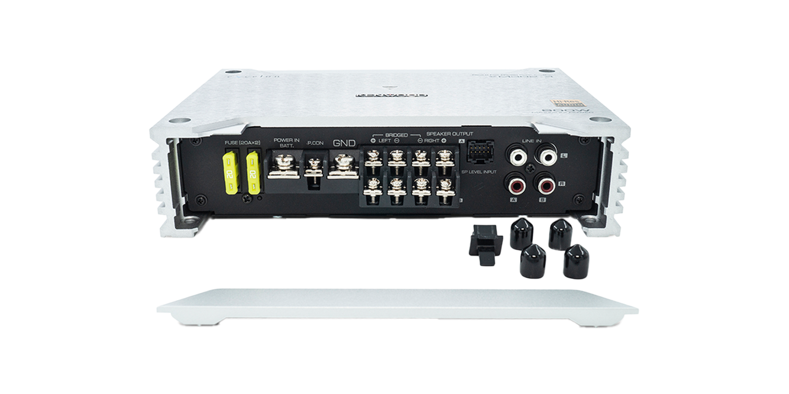 All control holes,RCA, wired remote and Speaker Level input terminals are covered with caps and plastic covers to avoid from moisture and dust.